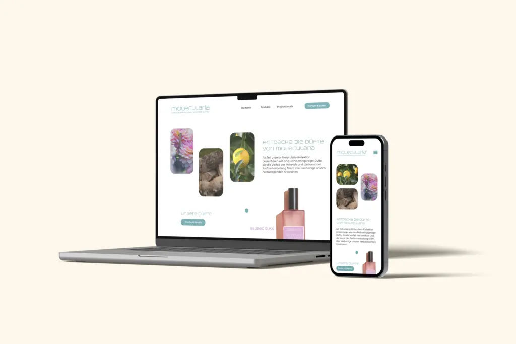 Im Rahmen dieses Projekts entwickelte ich für die fiktive Parfümmarke molecularia einen umfassenden Markenauftritt. Der Markenaufbau umfasste die Konzeption und Gestaltung des Corporate Designs, die Entwicklung der Produktlinie sowie die Gestaltung sämtlicher Werbemittel. Durch die einheitliche visuelle Sprache entstand eine konsistente Identität, die den Charakter der Marke widerspiegelt und ihre Wiedererkennbarkeit stärkt.